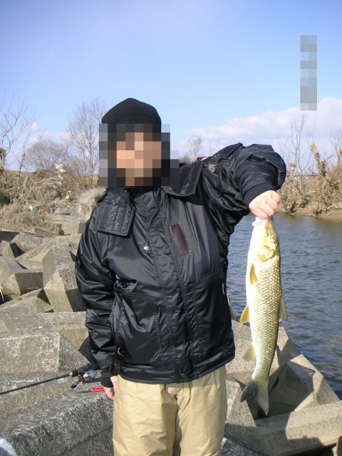 | 今年の初Fishingに行ってきました。 川は風も強く、まだまだ寒かったです。 メタルジグを投げていると、グット重くなり、なかなか良い手応え でも、少し違う感じが・・・ 2005年の初魚はバスではなく、にごいでした。 |
